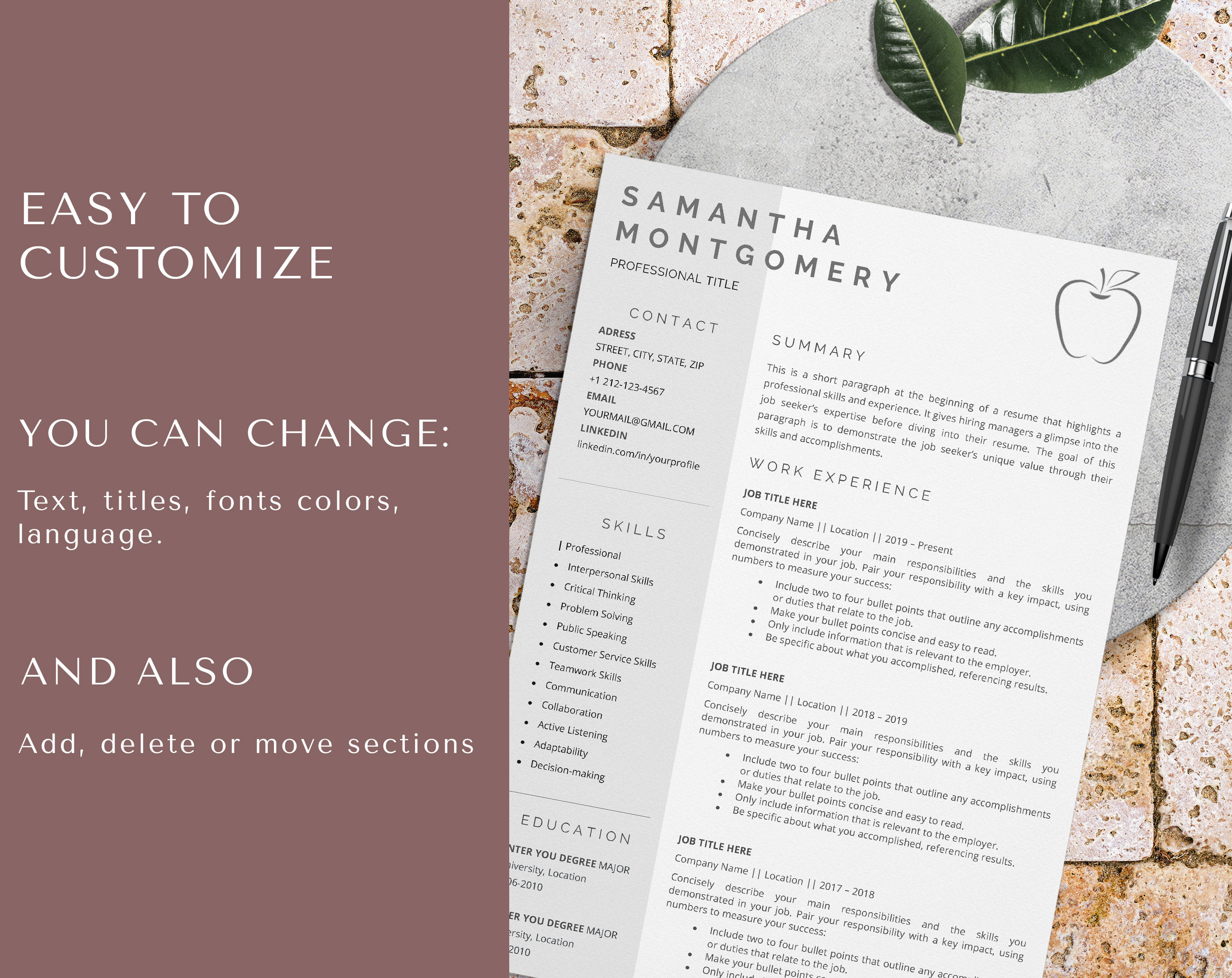 Preschool Teacher Resume Template for Word / Professional CV Template