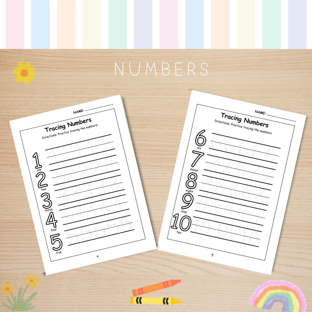 Printable Tracing Worksheet Bundle Alphabet Number Letter Color Shape