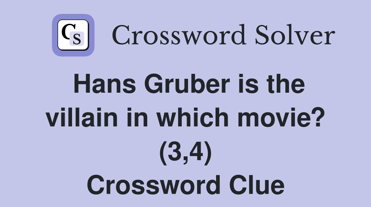 Hans Gruber is the villain in which movie? (3 4) Crossword Clue