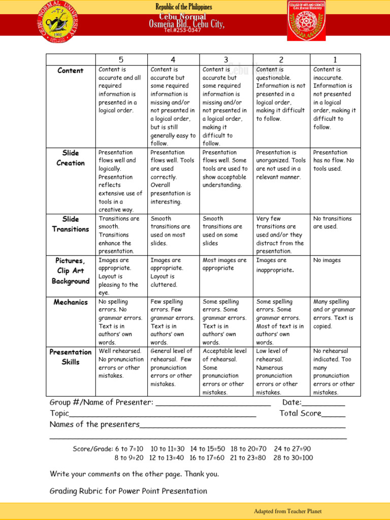 Here are some of the images for Presentation Rubric Template that we found in our website database.