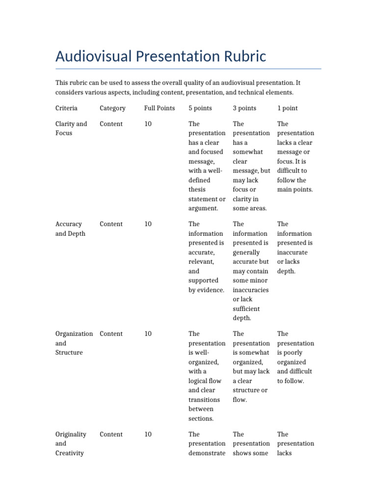 PowerPoint Presentation Rubric PDF Rubric (Academic) Microsoft