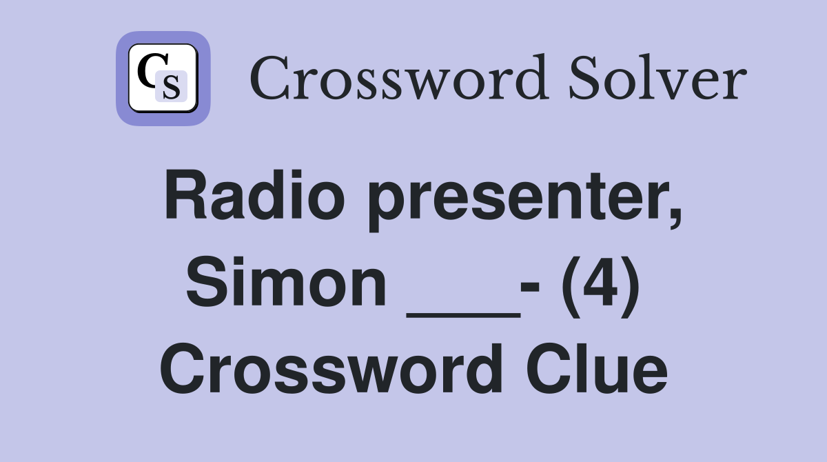 Radio presenter Simon (4) Crossword Clue Answers Crossword Solver