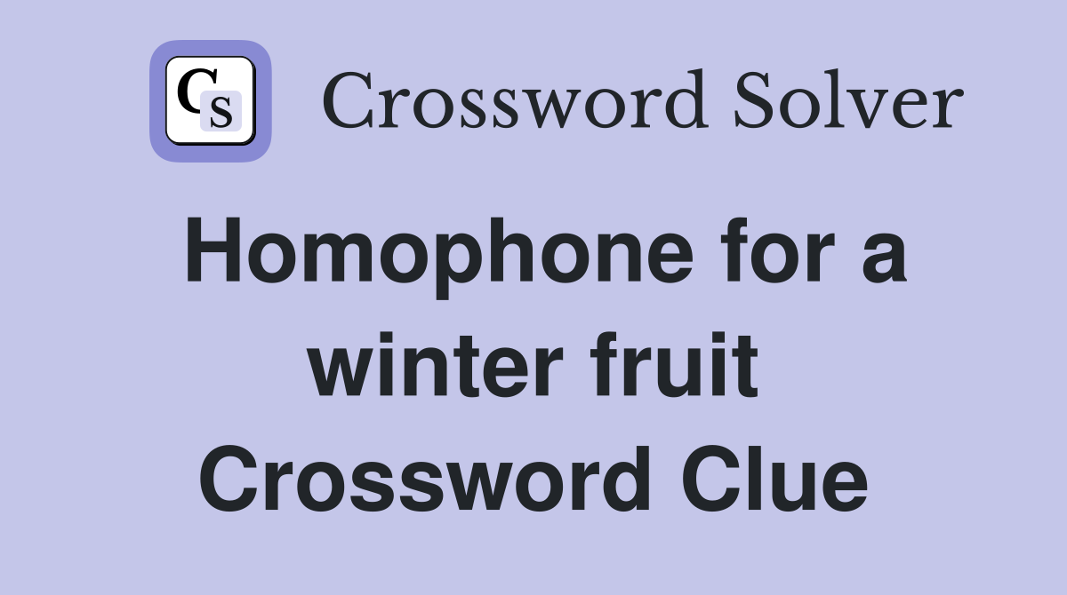 Homophone for a winter fruit Crossword Clue Answers Crossword Solver