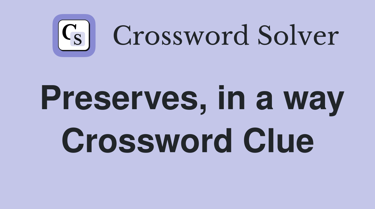 Preserves in a way Crossword Clue Answers Crossword Solver