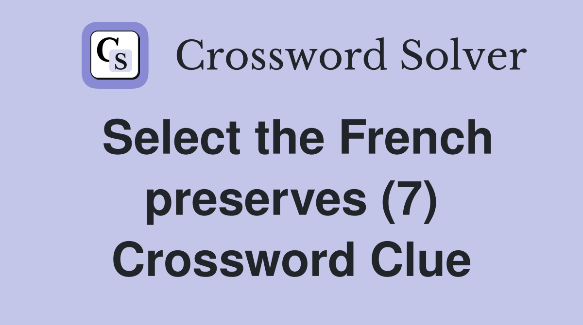 Select the French preserves (7) Crossword Clue Answers Crossword Solver