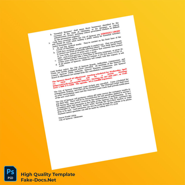 USA City of Spencer Editable Shelter In Place Press Release Template in