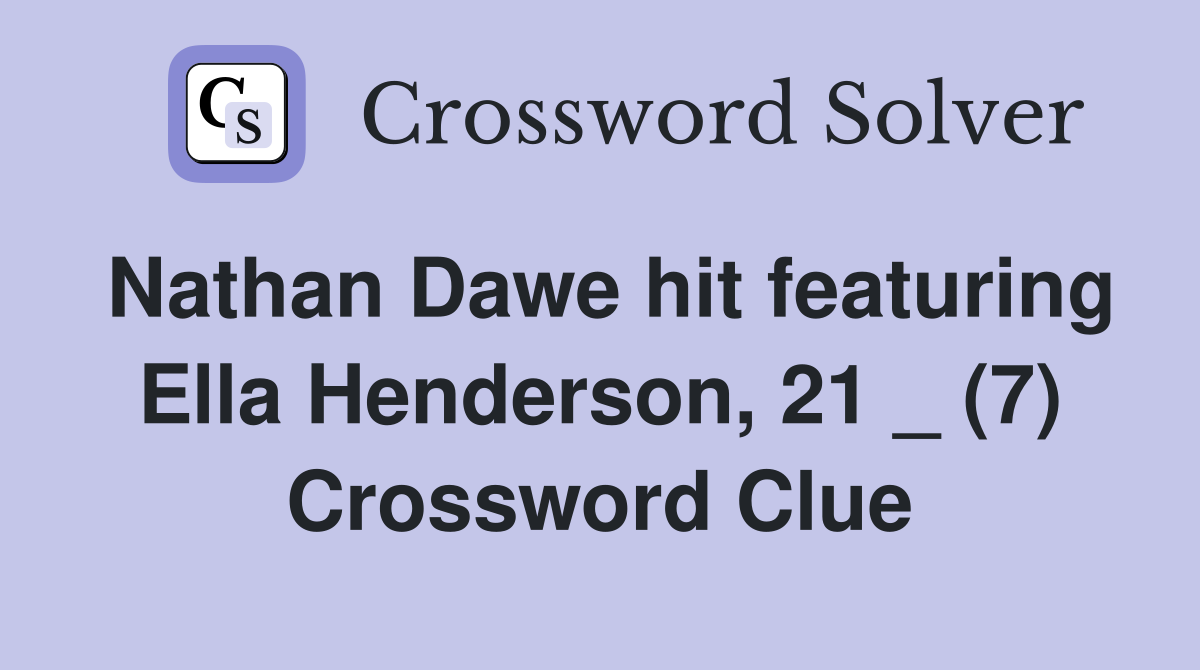 Nathan Dawe hit featuring Ella Henderson 21 (7) Crossword Clue