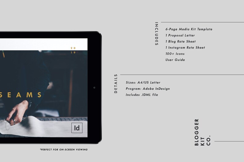 Photoshop Indesign 1 Page Blog Media Kit Template Blogger Media Press