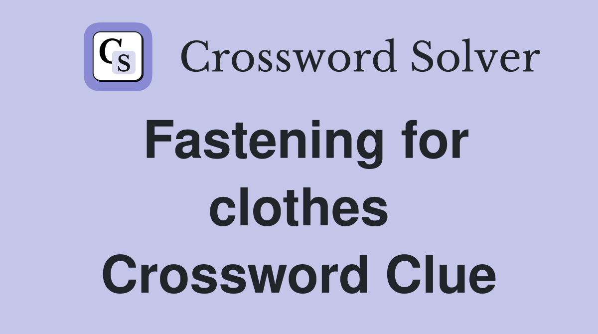 Fastening for clothes Crossword Clue Answers Crossword Solver
