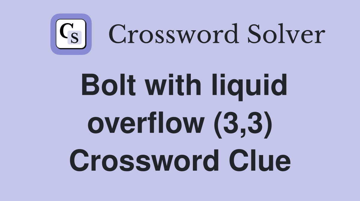 Bolt with liquid overflow (3 3) Crossword Clue Answers Crossword Solver
