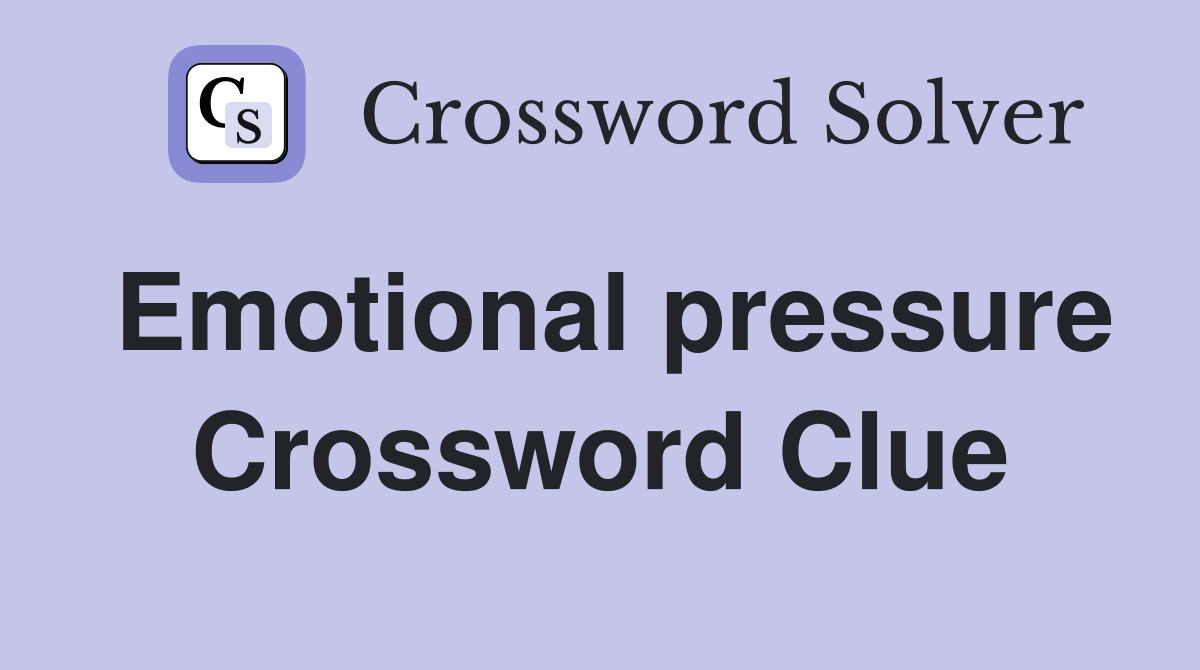 Emotional pressure Crossword Clue Answers Crossword Solver
