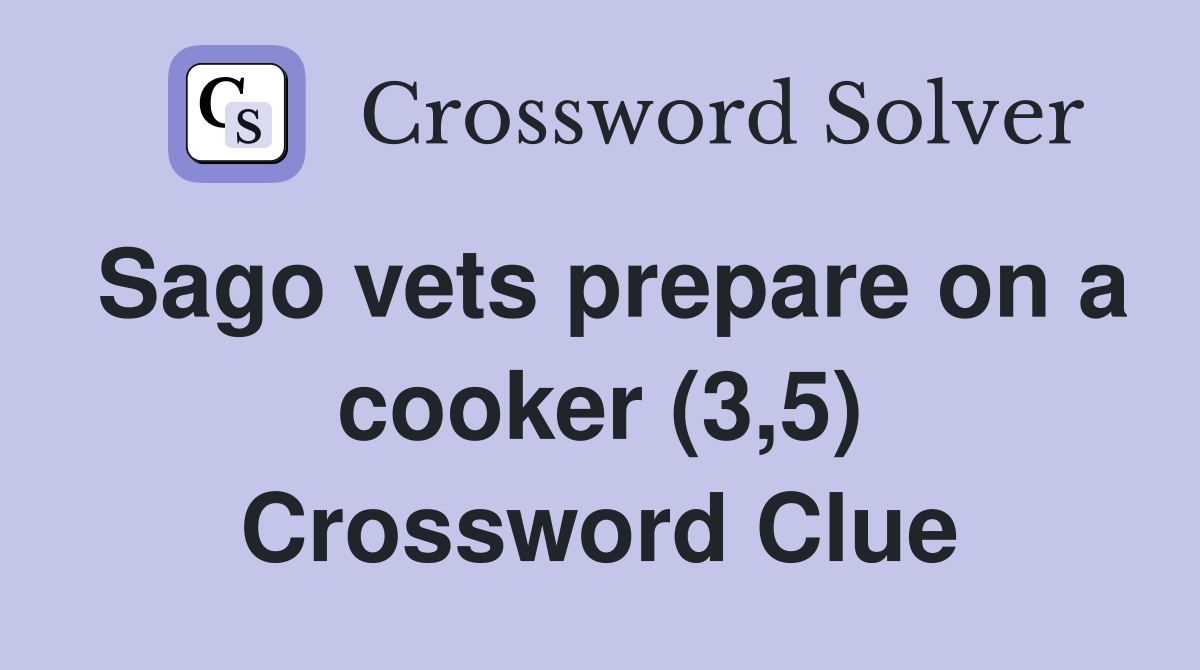 Sago vets prepare on a cooker (3 5) Crossword Clue Answers