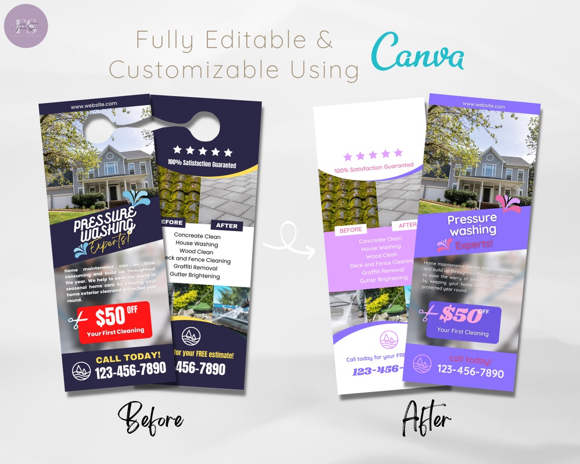 Pressure Washing Door Hanger Template: Customizable Canva Design