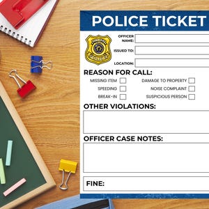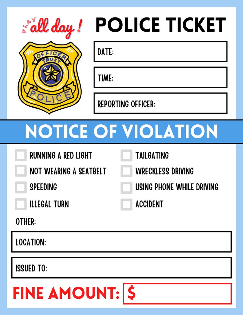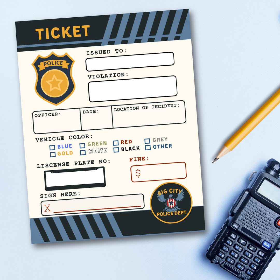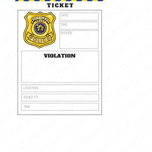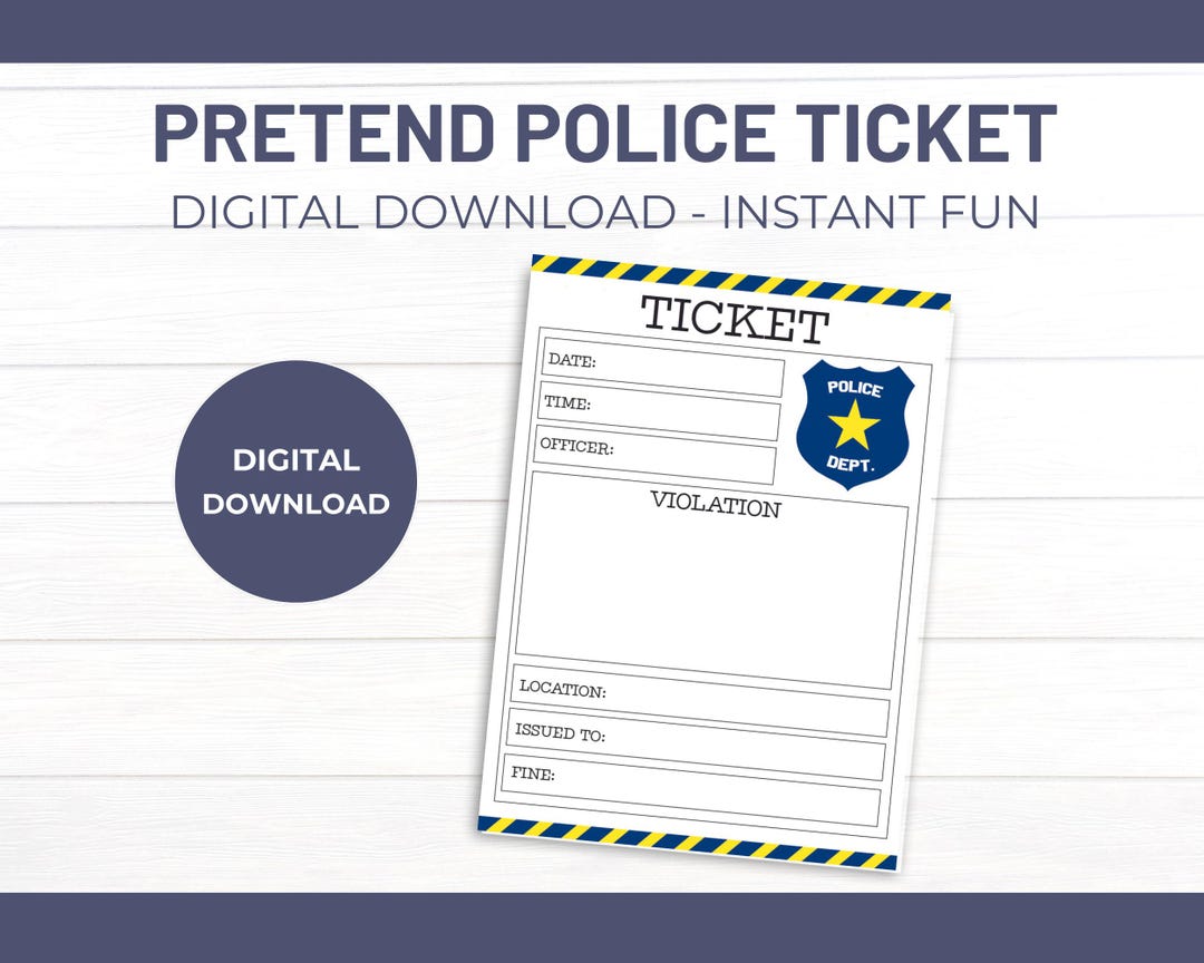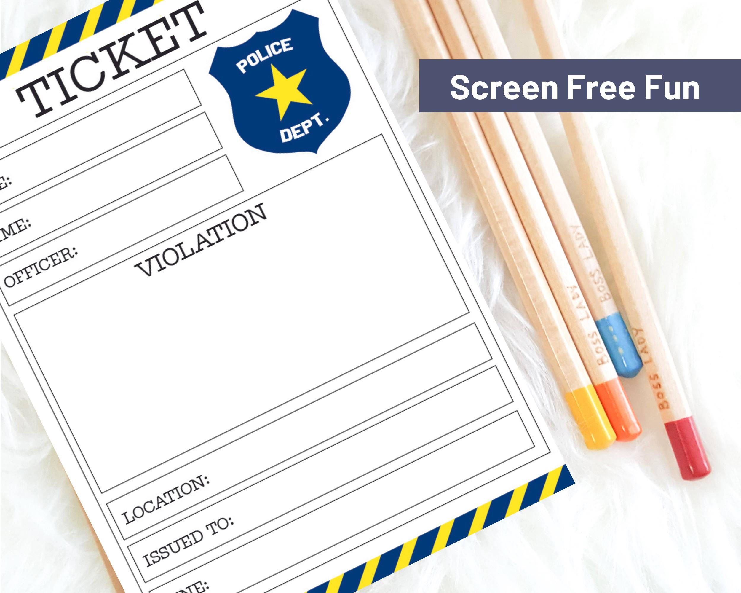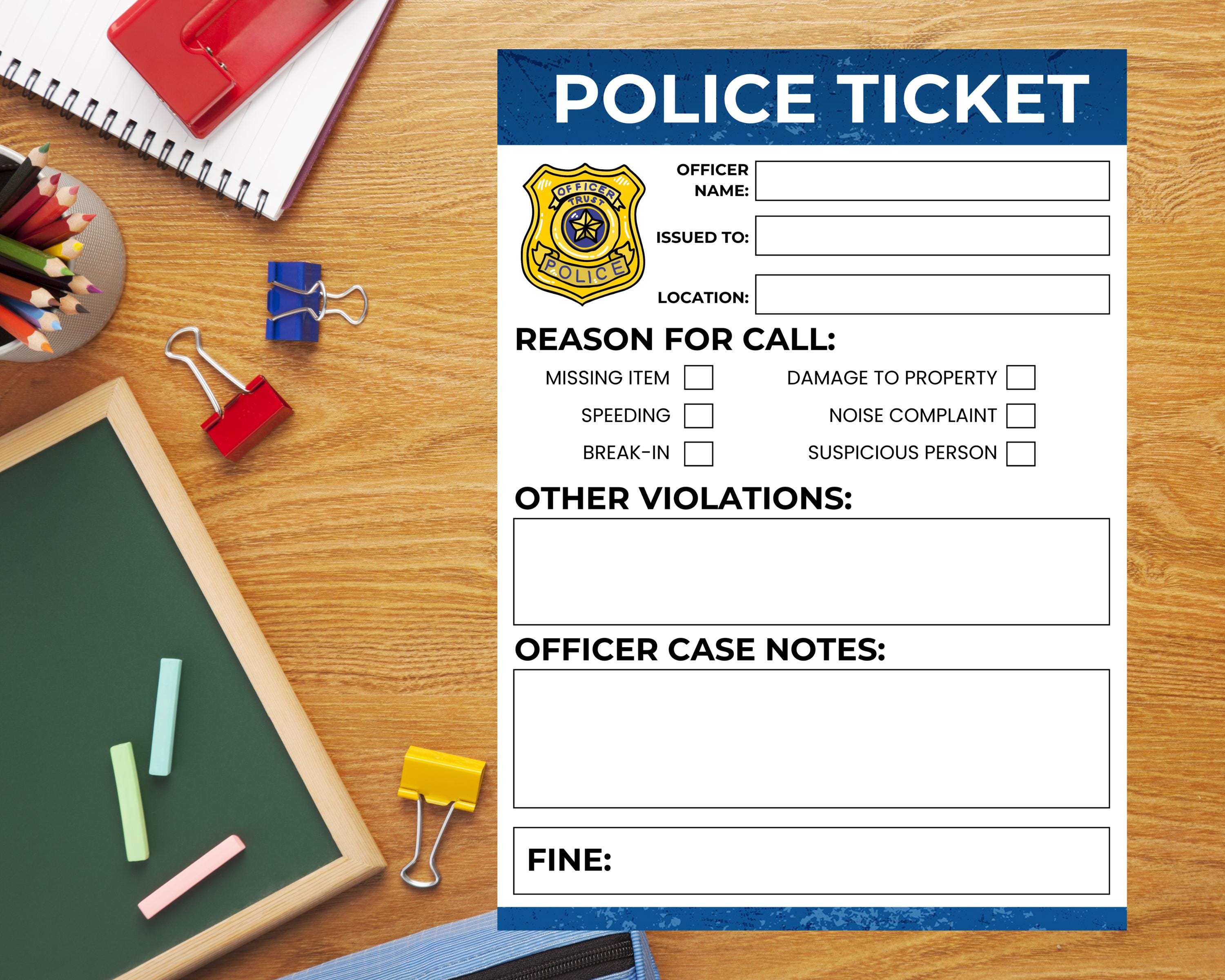 Pretend Police Ticket Printable Play Cop Instant Download Law
