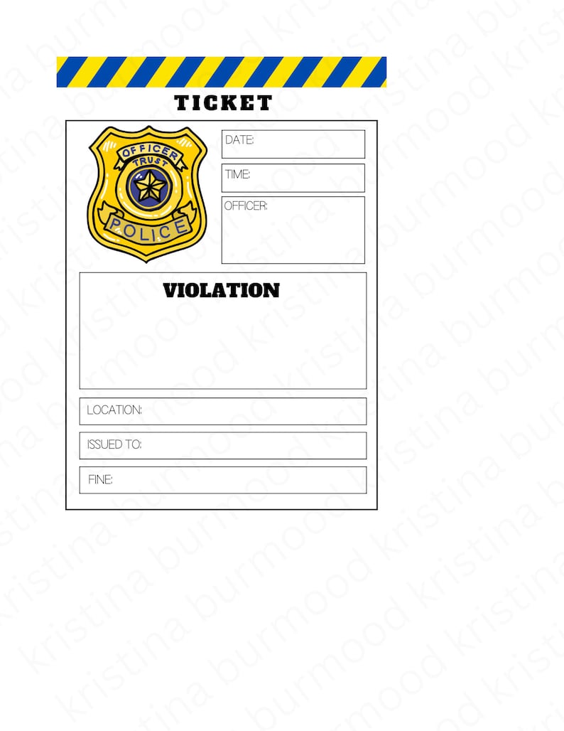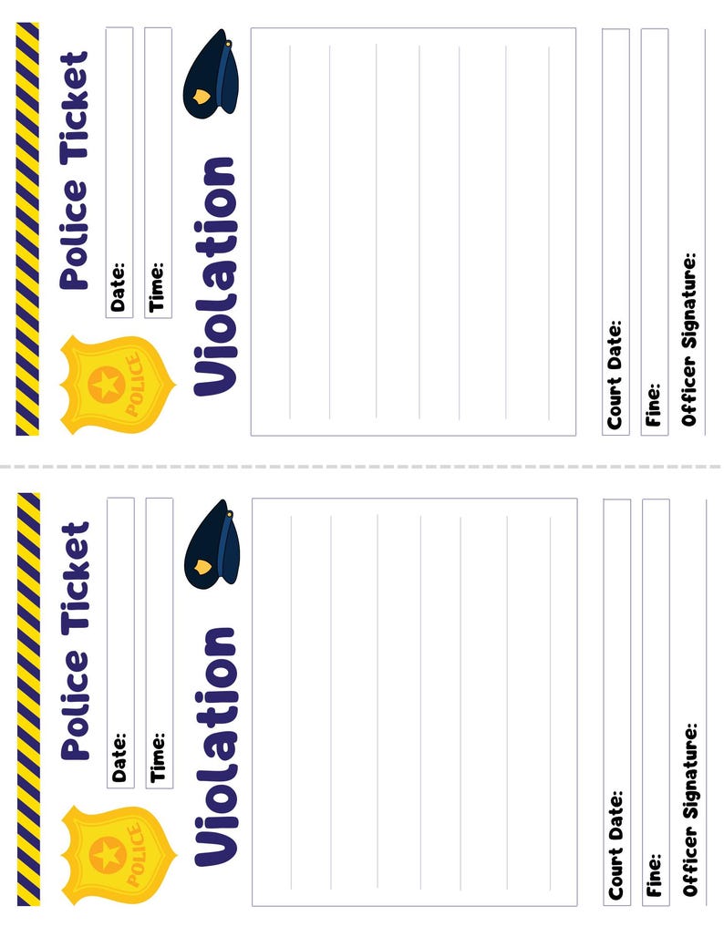 Pretend Police Ticket Template