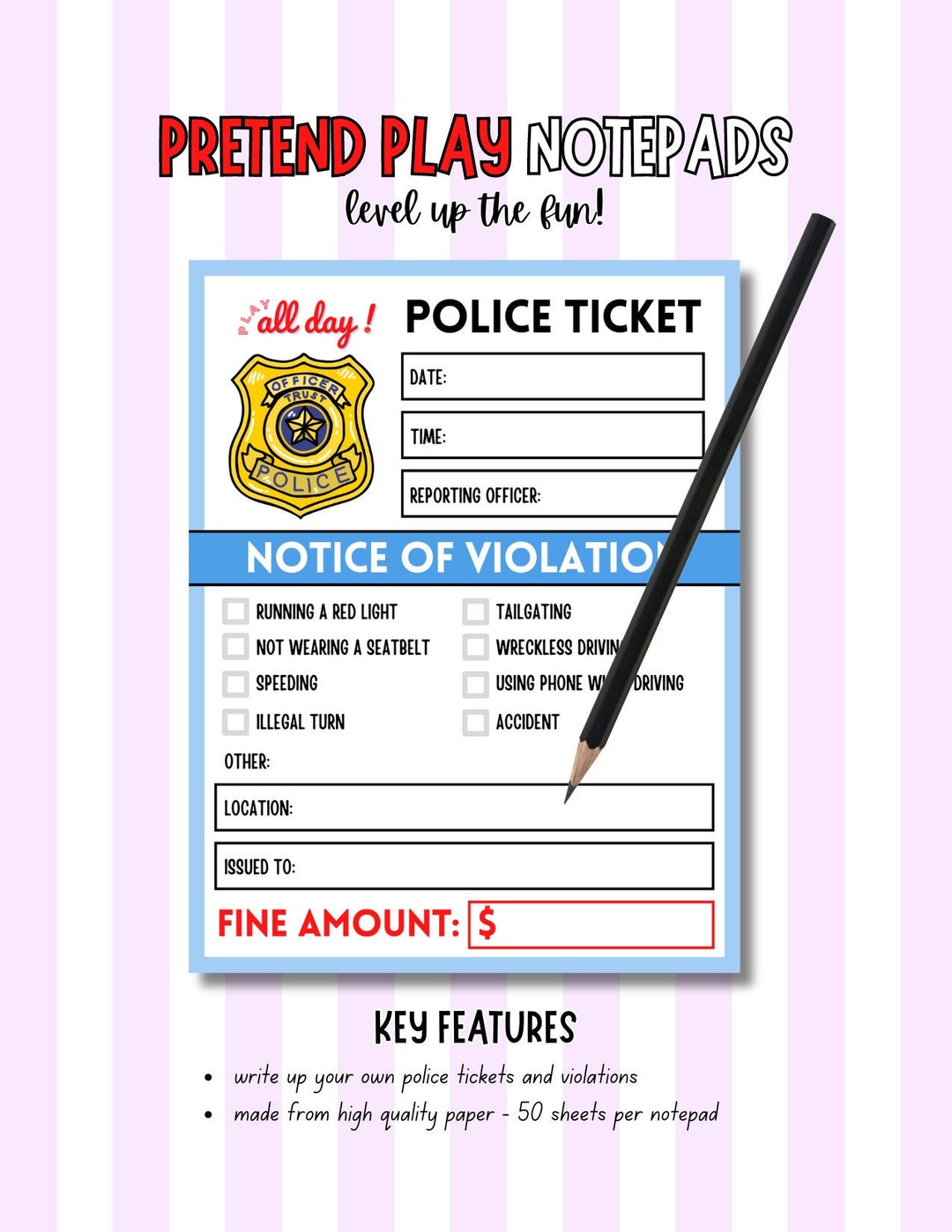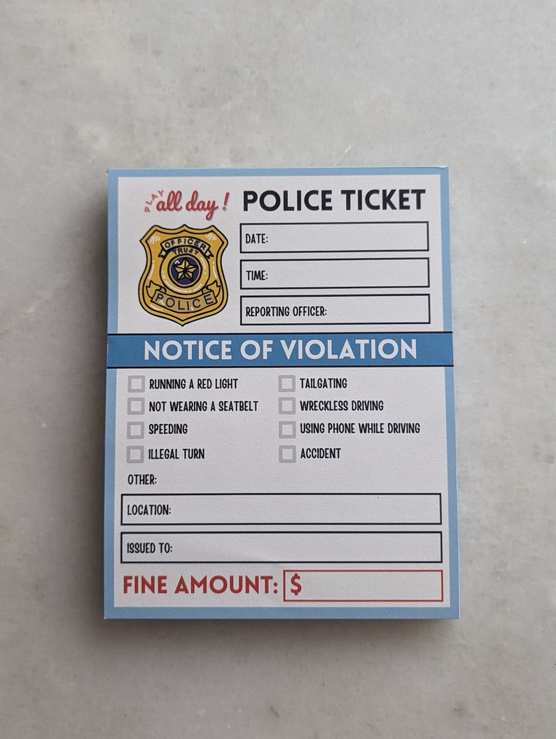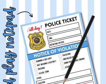 Police Ticket Pretend Play Notepad 50 Pages per Notepad Etsy