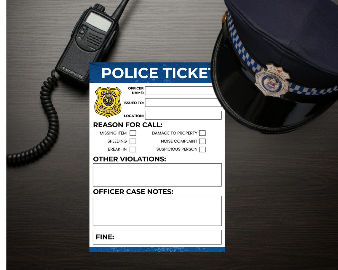 Police Pretend Play police Station Pretend Police Tickets Etsy