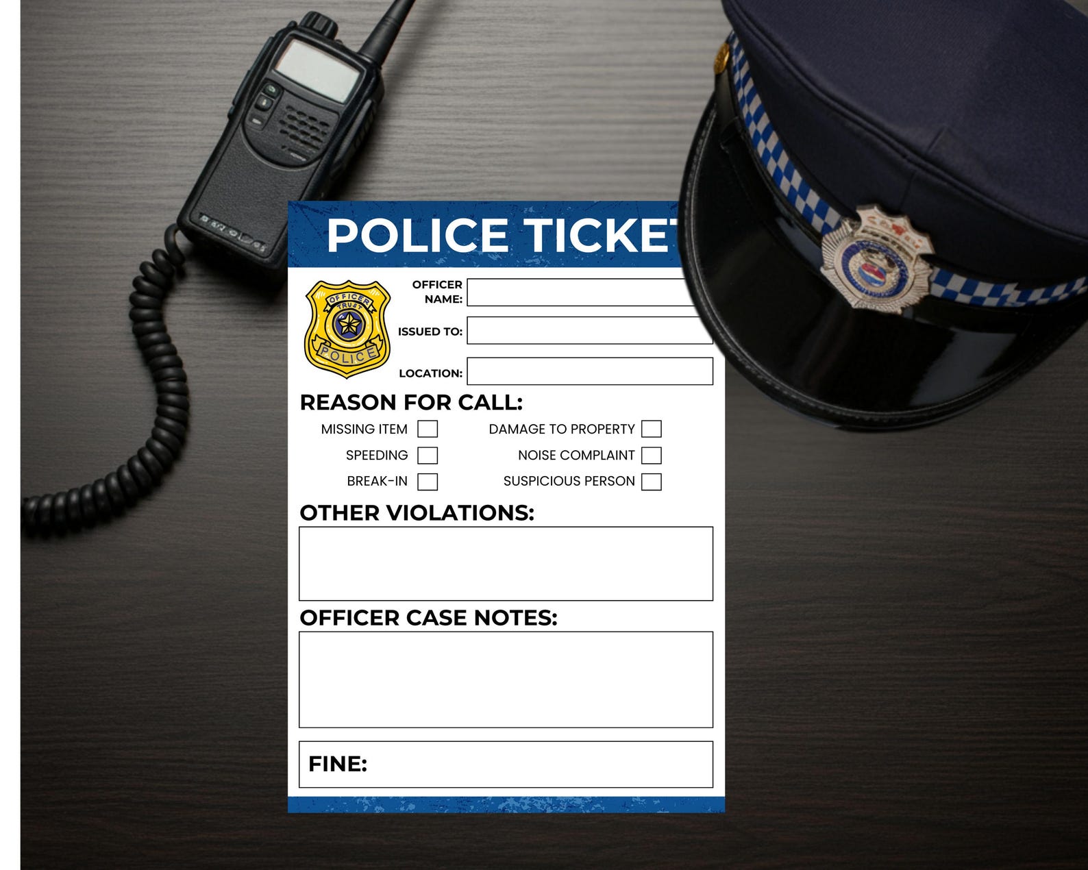 Printable Blank Police Ticket Template