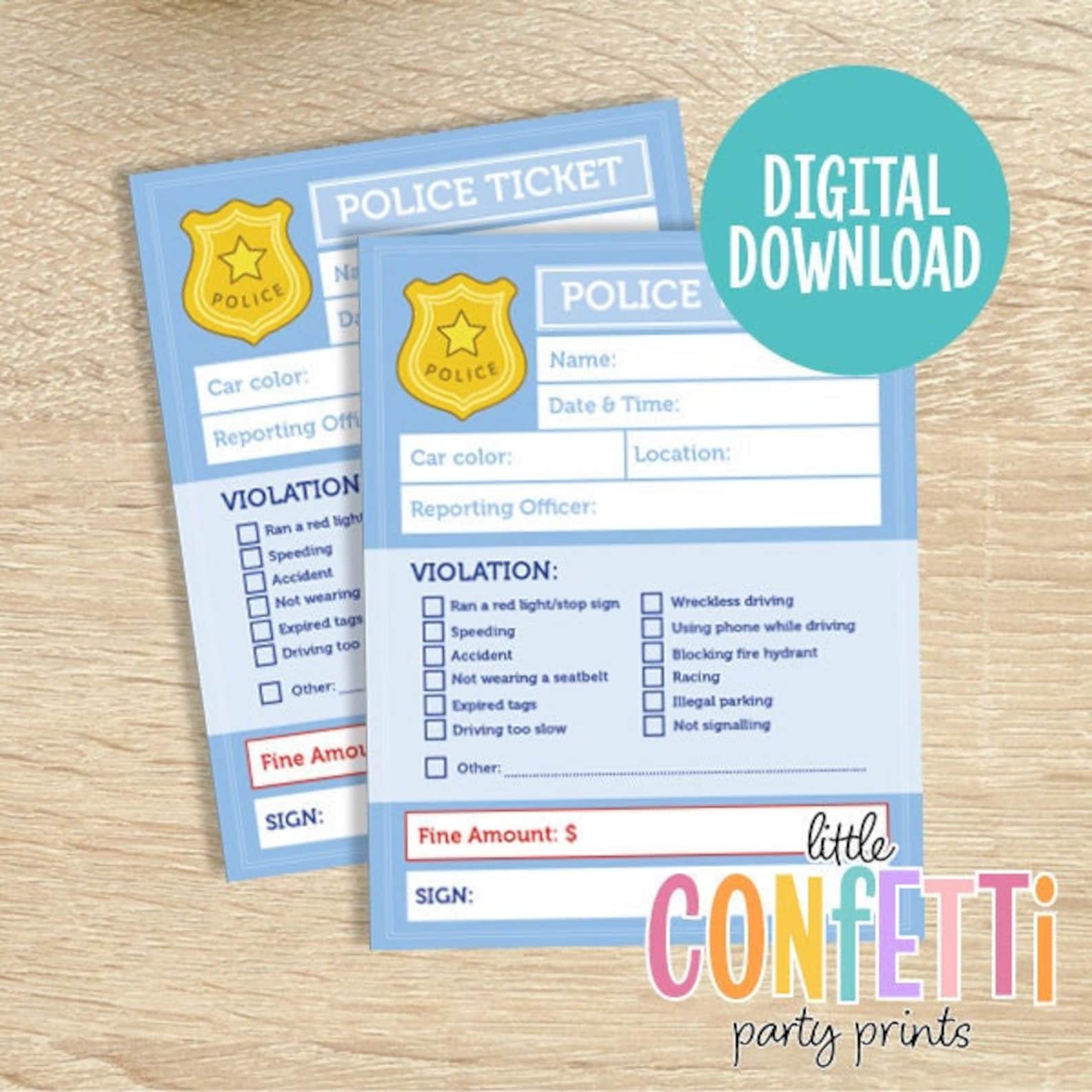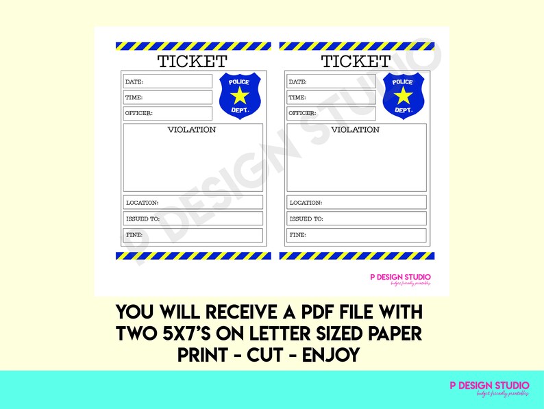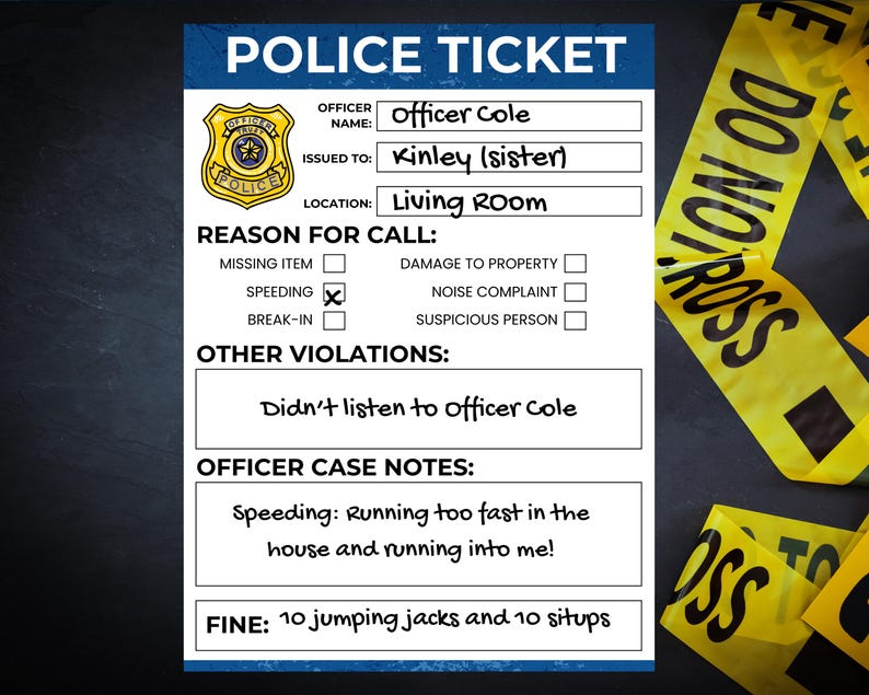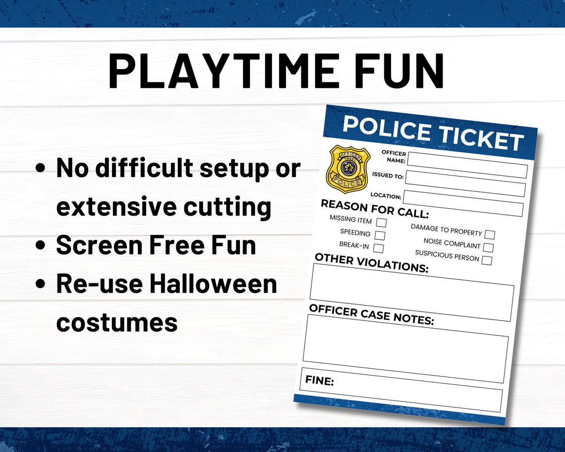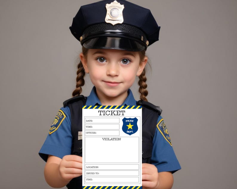 Pretend Police Ticket Printable Play Cop Instant Download Summer