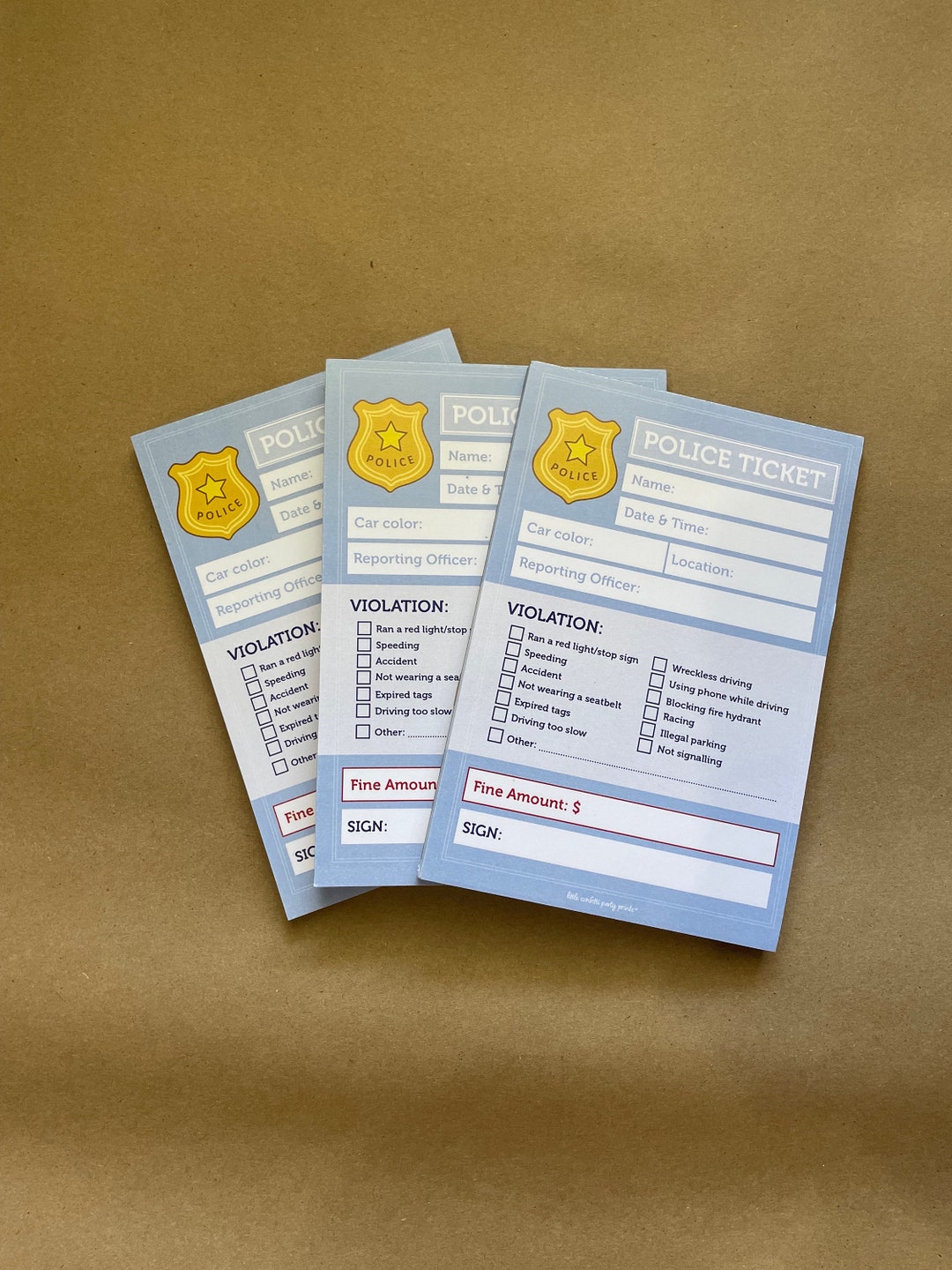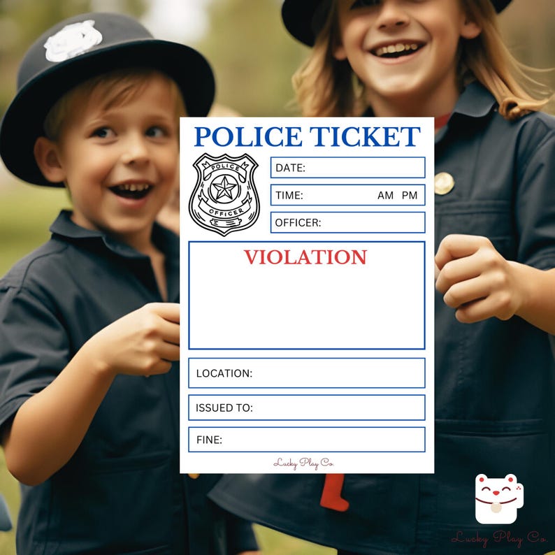 Kids Police Printable Tickets Pretend Play by HazelflyPaperCo Fam