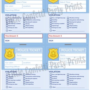 Pretend Play Police Tickets police Party Printable Instant Download
