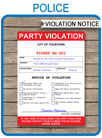 Fake Police Ticket Printable
