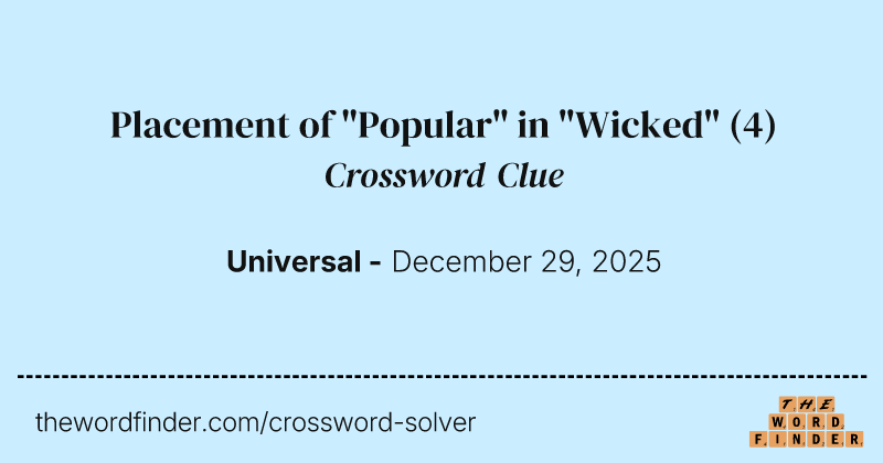 Placement of Popular in Wicked Crossword Clue