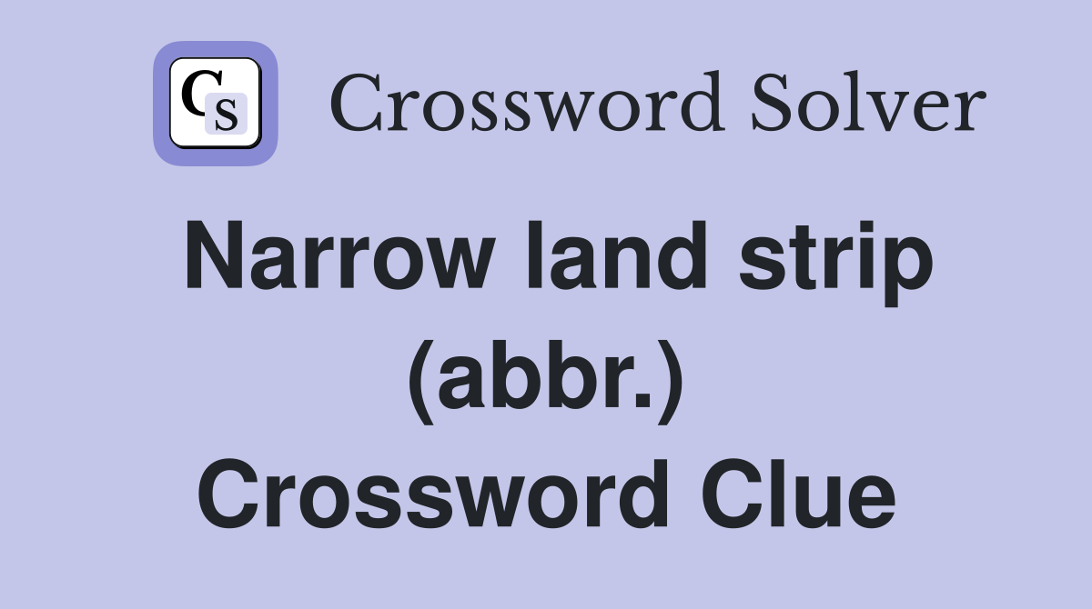 Narrow land strip (abbr ) Crossword Clue Answers Crossword Solver