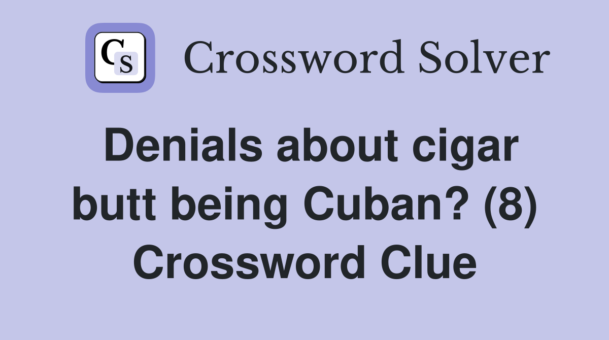 Denials about cigarbeing Cuban? (8) Crossword Clue Answers