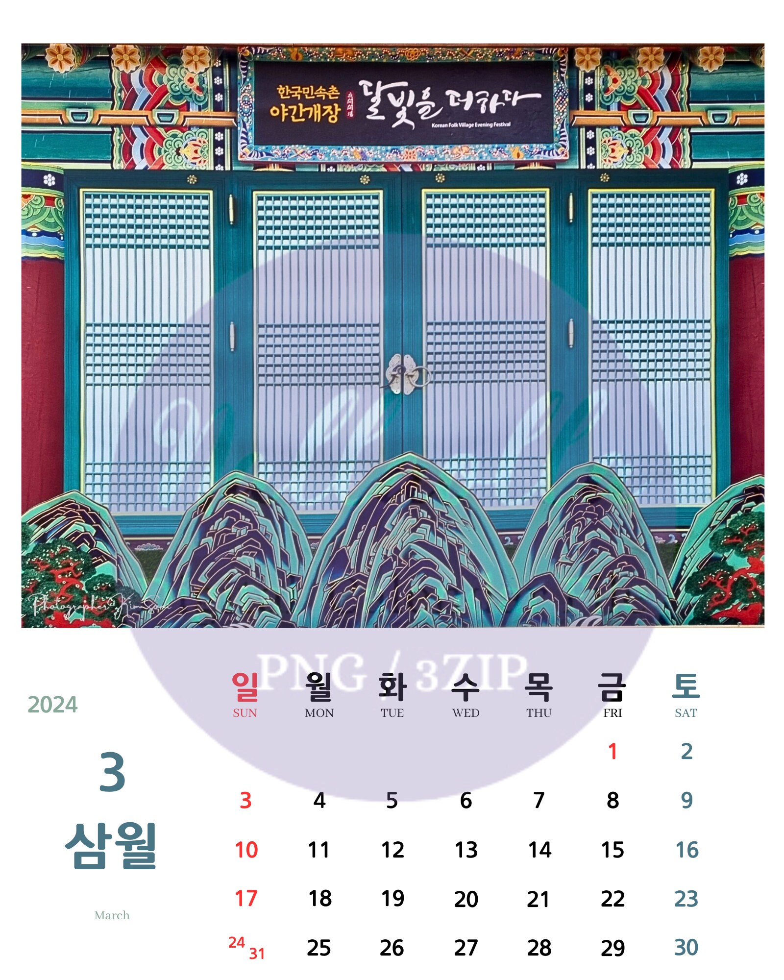 2024calendar/korean Calendar/hangeul Calendar/13 PNG File/3 ZIP File
