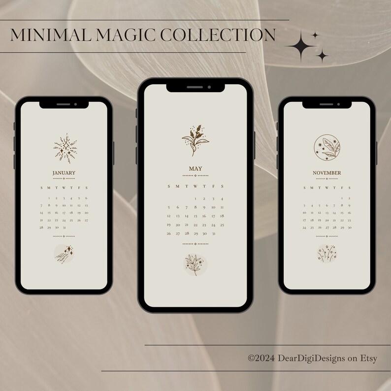 2024 Minimal Magic Phone Wallpaper Star Plant Flower Botanical Sparkle