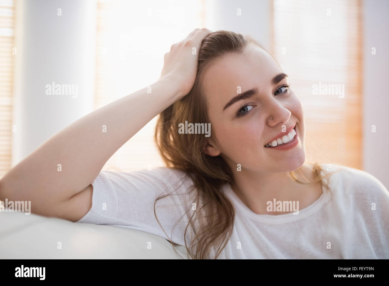 Pretty brunette relaxing home hi res stock photography and images Alamy