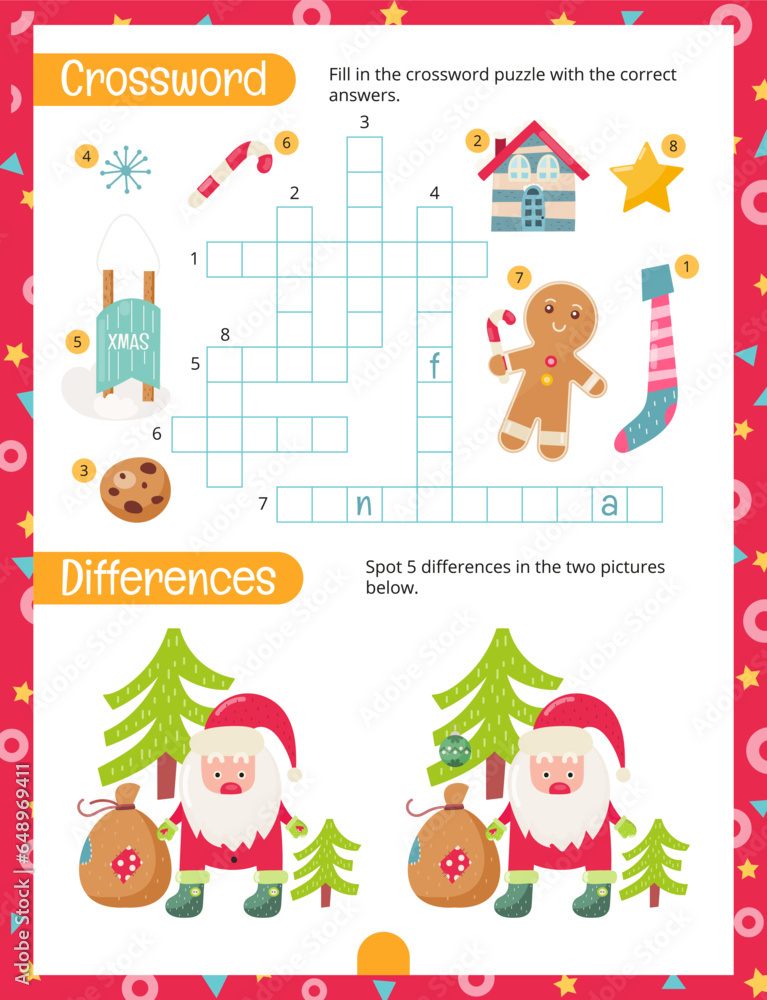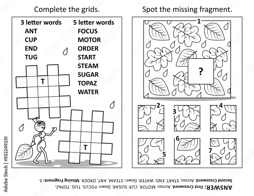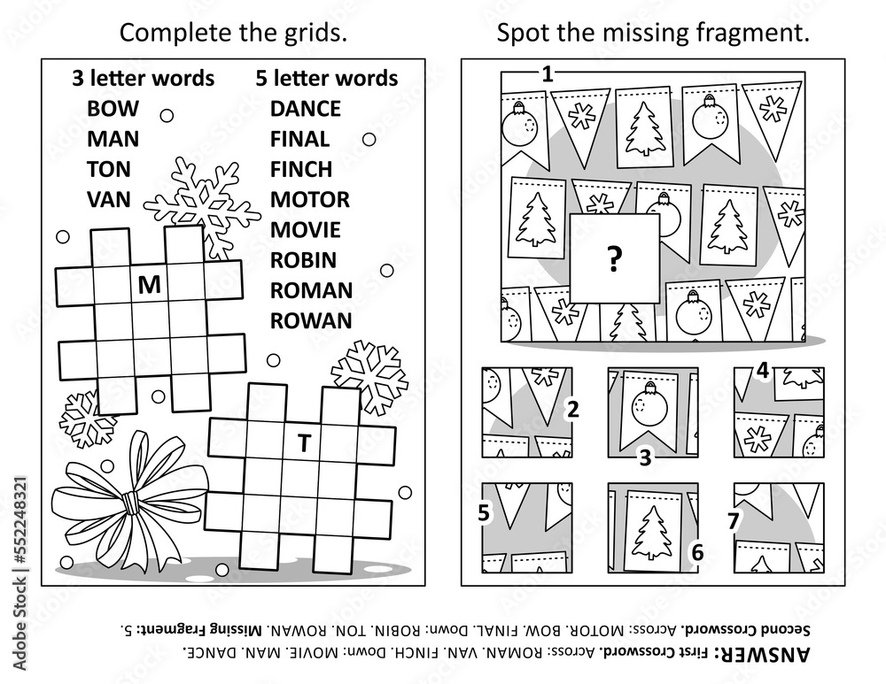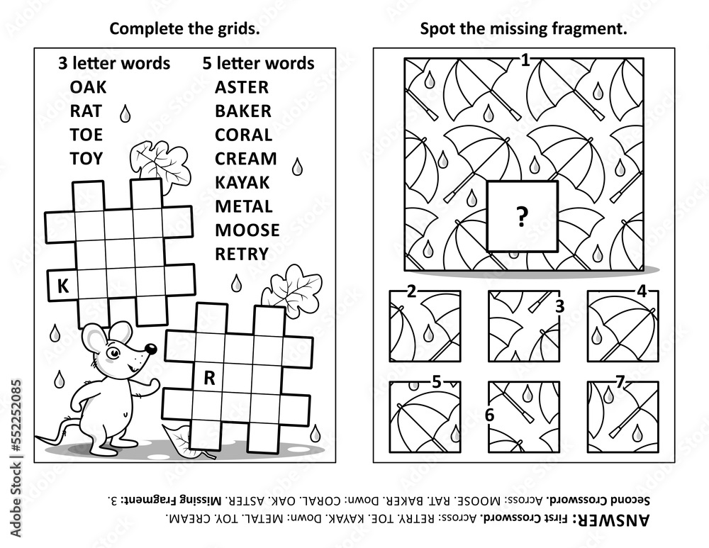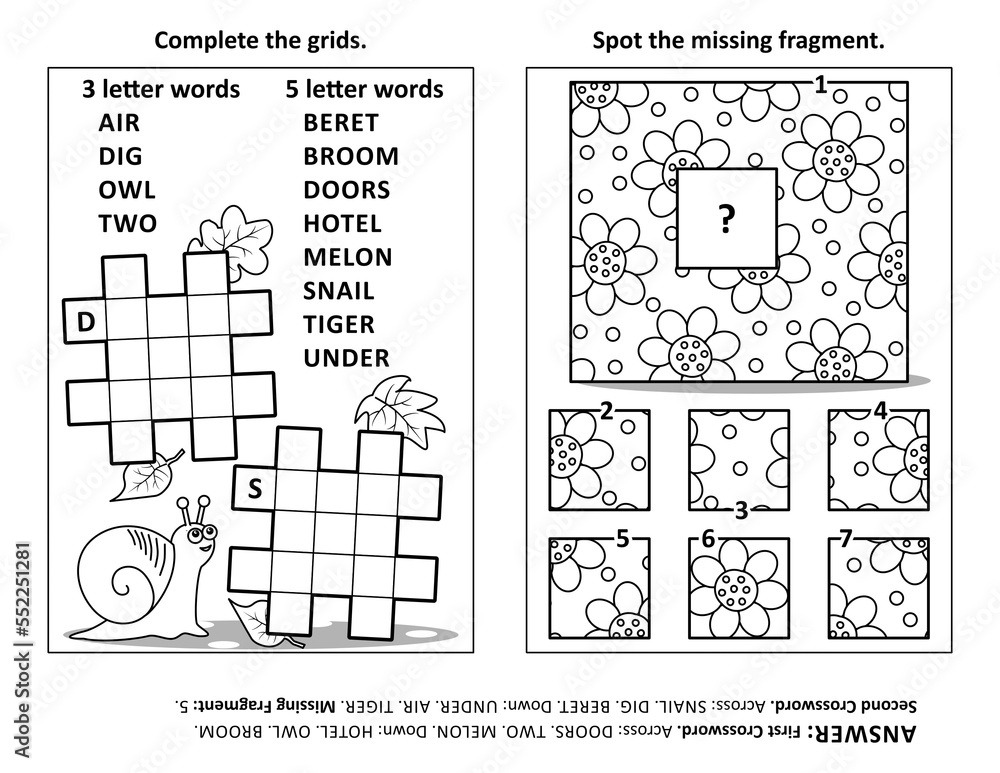 Activity page with two puzzles Fill in crossword puzzle or word game