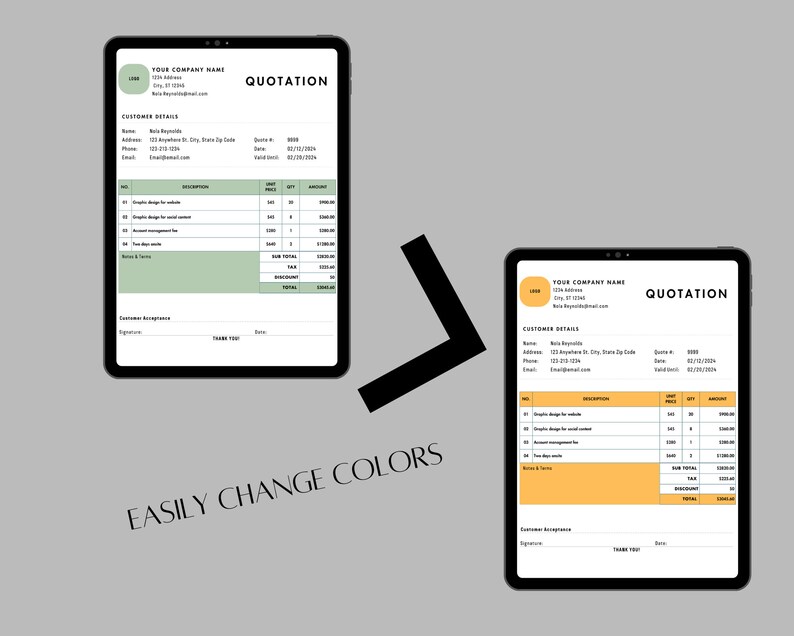 Invoice Template Digital Quote Template Canva Price Proposal Template