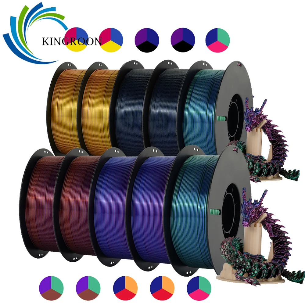 Amazon com: Kingroon 3D Printer Filament Triple Color Silk PLA Filament