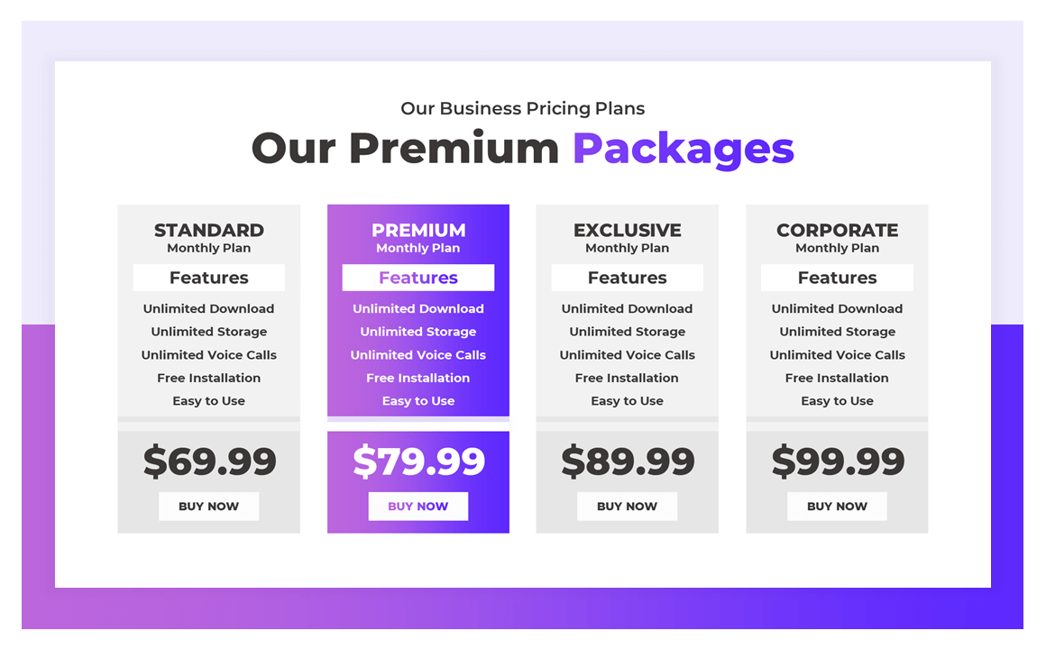 Product Plan Offer Price Package Subscription Options Comparison Table