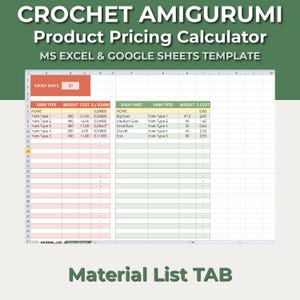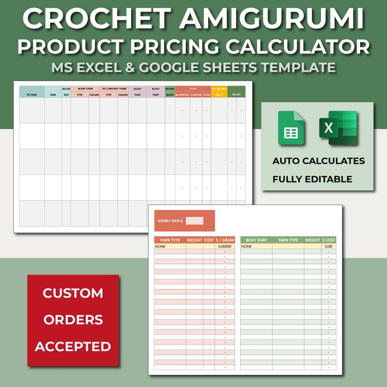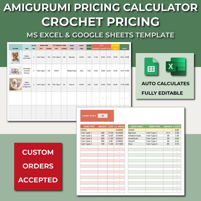 Crochet Amigurumi Pricing Spreadsheet Template Google Sheets Excel