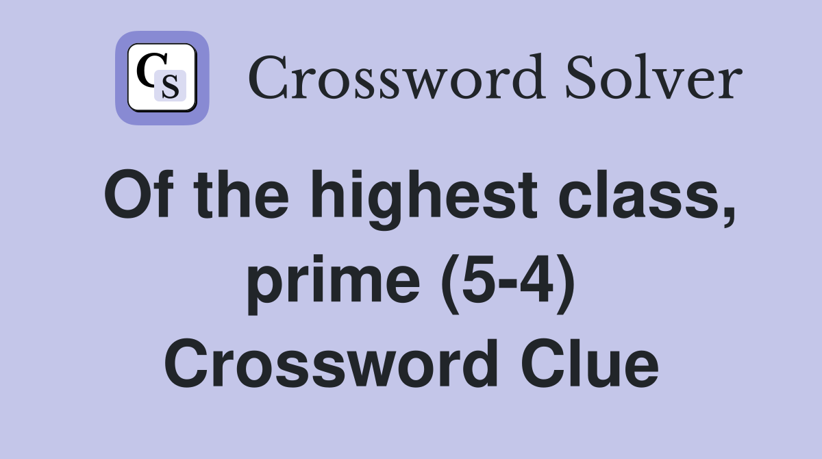 Of the highest class prime (5 4) Crossword Clue Answers Crossword