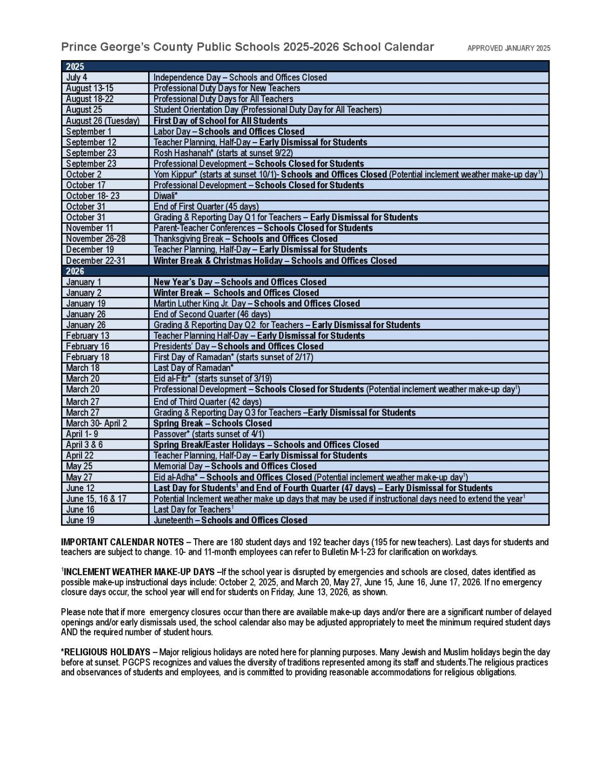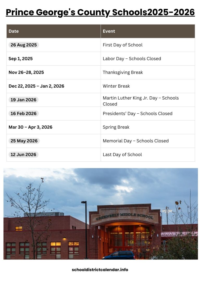 Prince George #39 s County Schools Calendar with Holidays 2025 2026