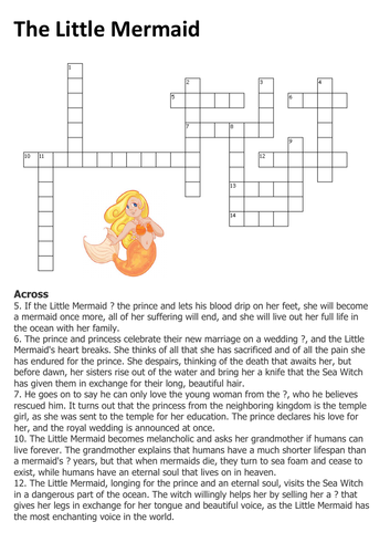 The Little Mermaid Crossword Teaching Resources