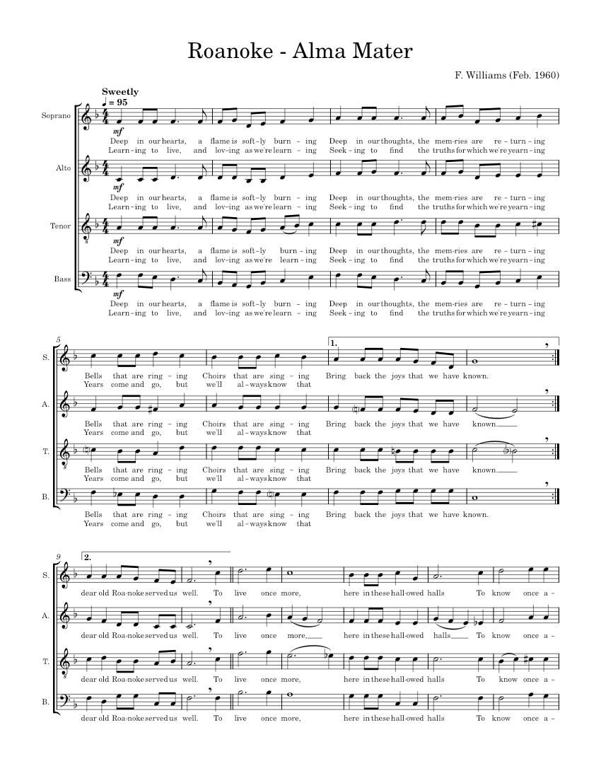 Roanoke Alma Mater Sheet music for Bass guitar Synthesizer (SATB