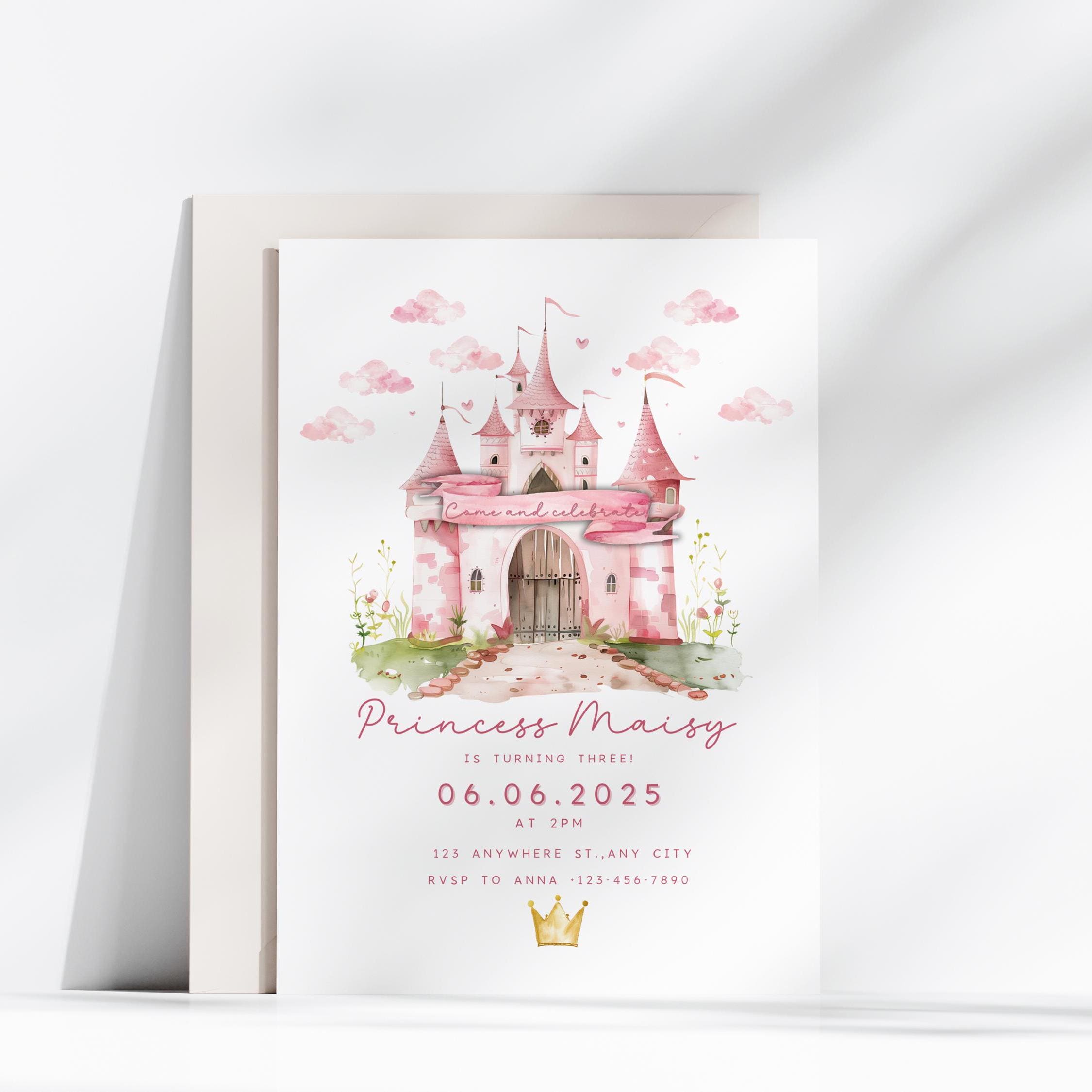 Princess Birthday Party Invitation Digital Editable Party Invitation