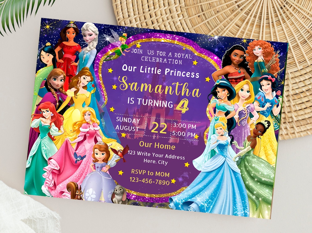 Editable Princess Birthday Invitation Magical Disneyy Princess