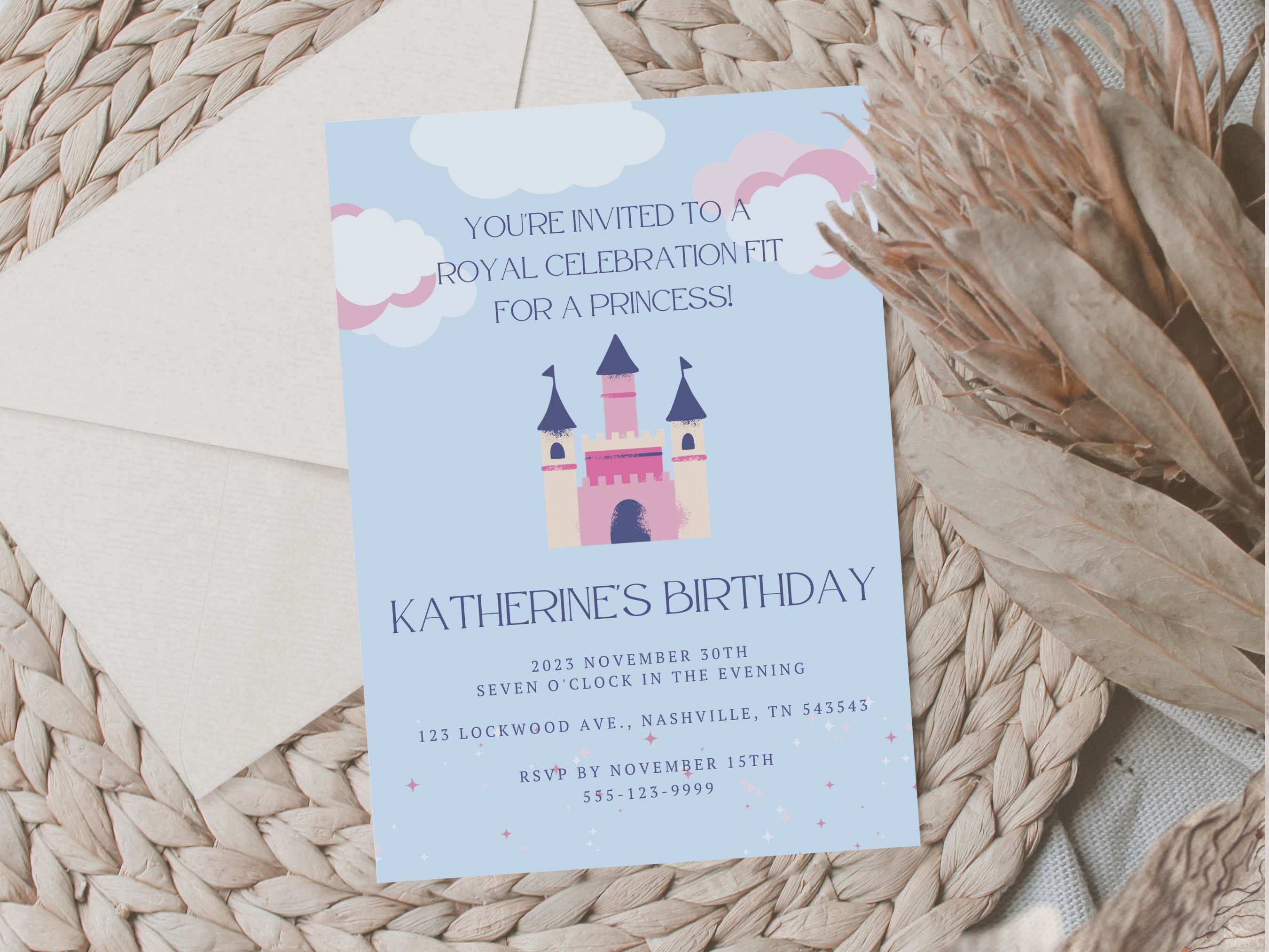 Free Pink Princess Party Invitation Background Template to Edit Online