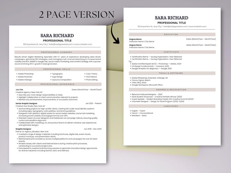 ATS Resume Template: Canva Editable Cover Letter Included (digital