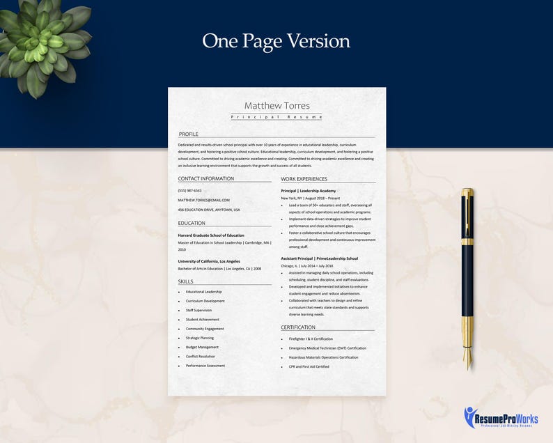Principal Resume Template: Academic CV Writing Guide (ATS Compatible