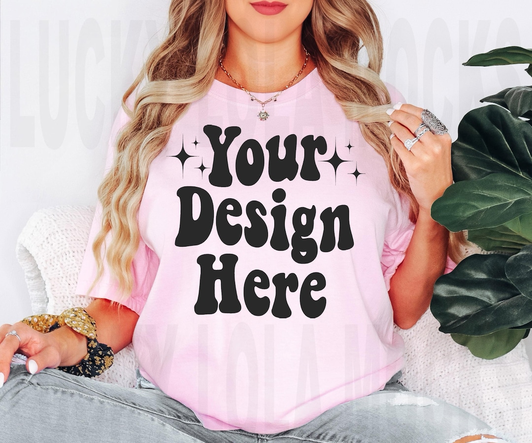 Comfort Colors 1717 Blossom Mockup Pink Shirt Mockup C1717 Blossom