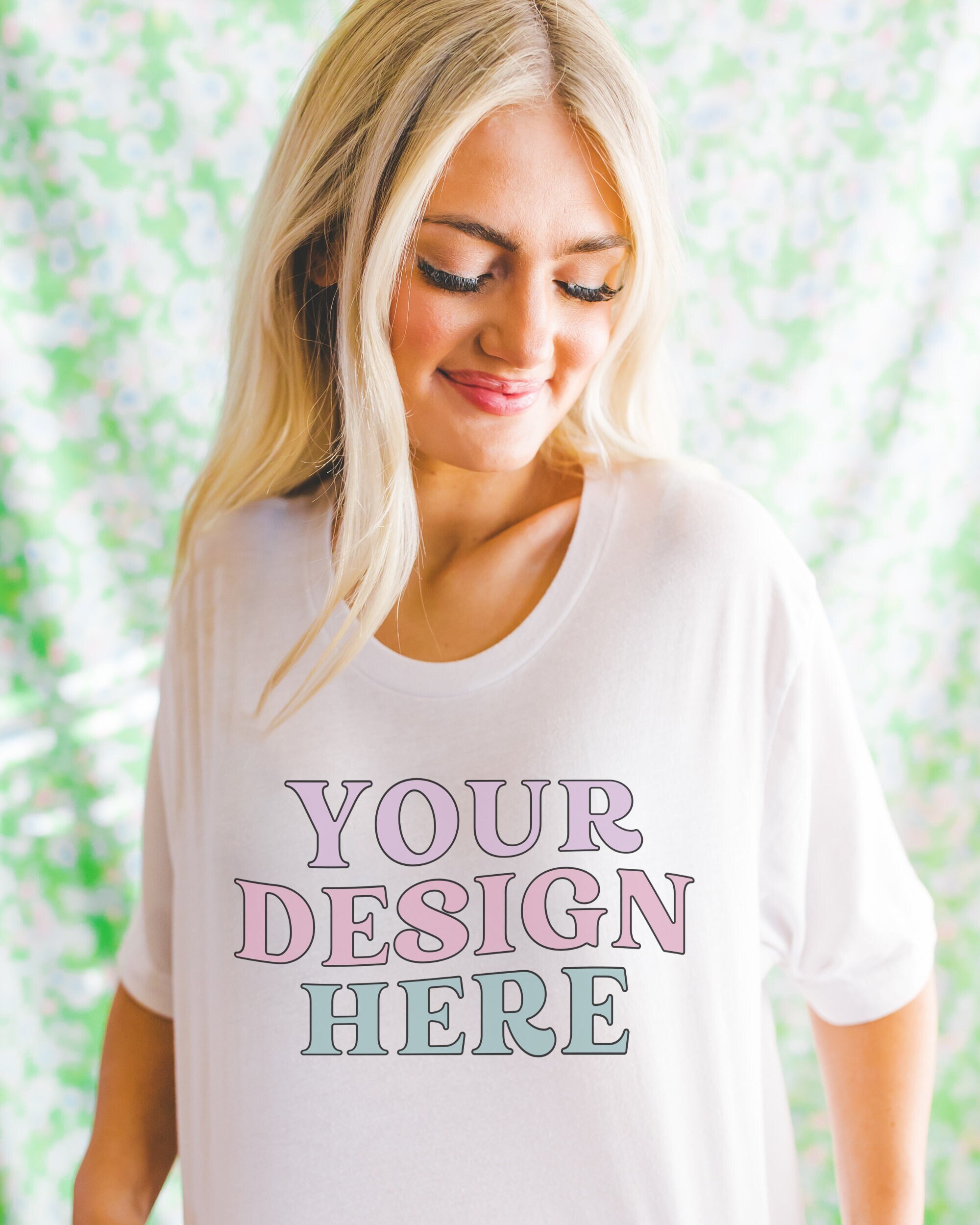 Mockup of White Tee Shirt With Floral Aesthetic for Spring Etsy