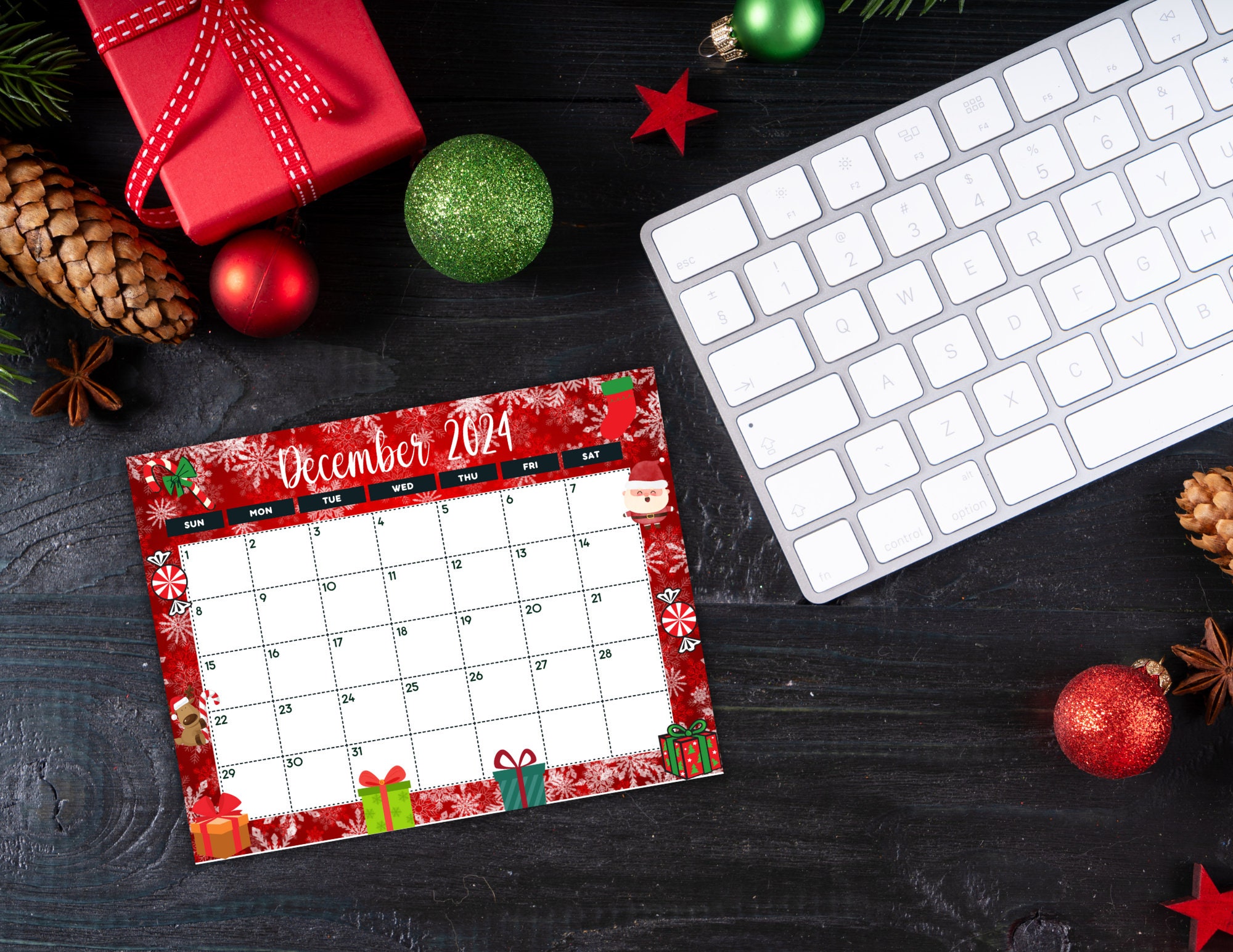 December 2024 Printable Calendar Monthly Planner PNG Festive