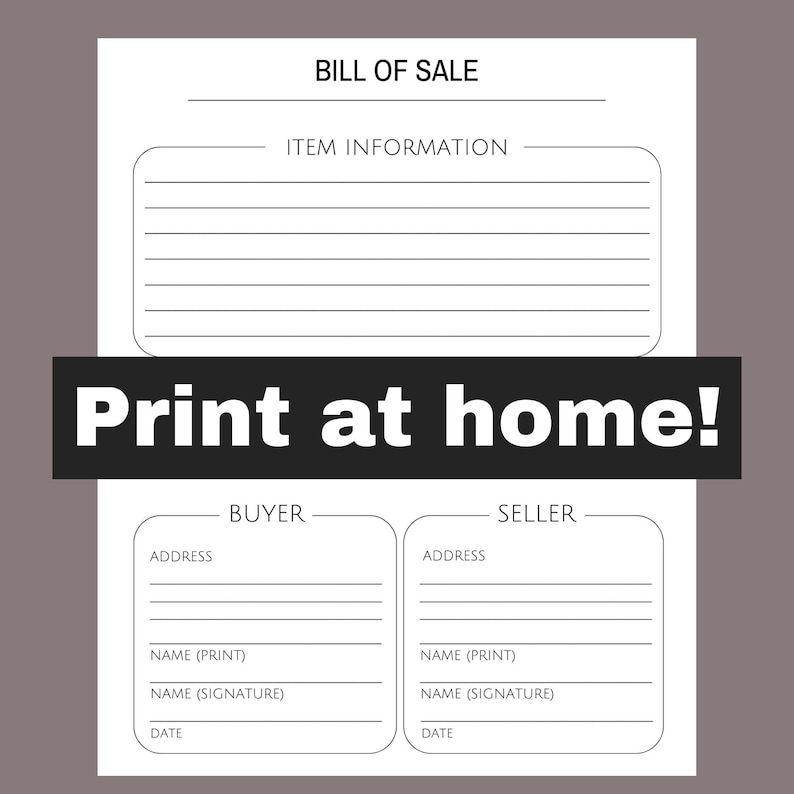 Bill of Sale 8 5 quot X 11 quot Instant Download Printable Etsy